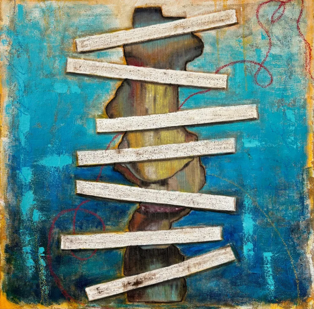 2. My artistic path hasn’t been linear, but this is exactly what has deeply influenced my style. I’ve had the time to explore different techniques, without the pressure to adhere to a norm or trend. This allowed me to develop a personal language that combines introspection with experimentation. The freedom to explore led me to discover an artistic language that blends the figurative with the abstract.