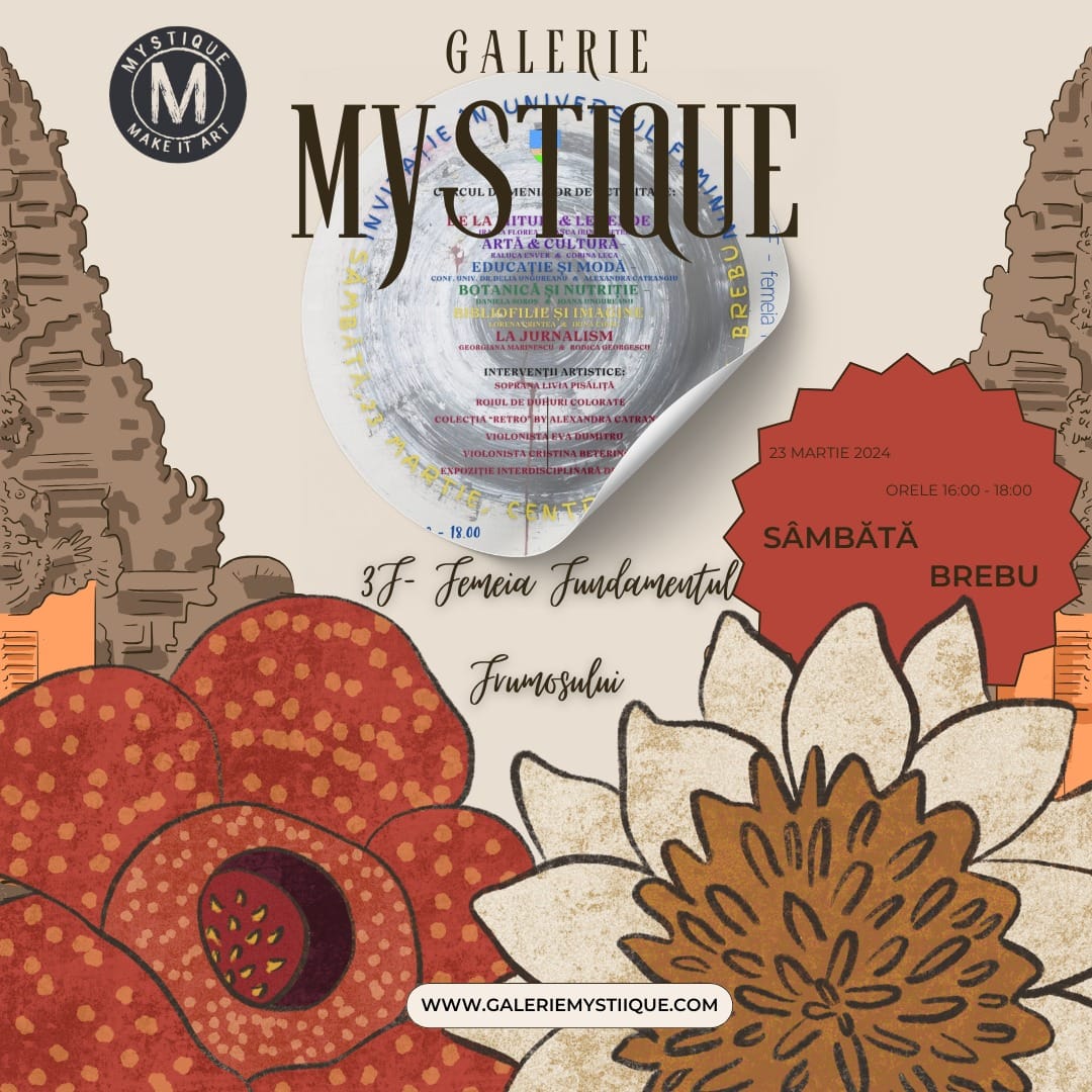 Galeria Mystique a avut plăcerea de a participa sâmbătă, 23 martie 2024, între orele 16:00-18:00, în localitatea Brebu, la evenimentul „3F – Femeia, Fundamentul Frumosului”, o celebrare a feminității și