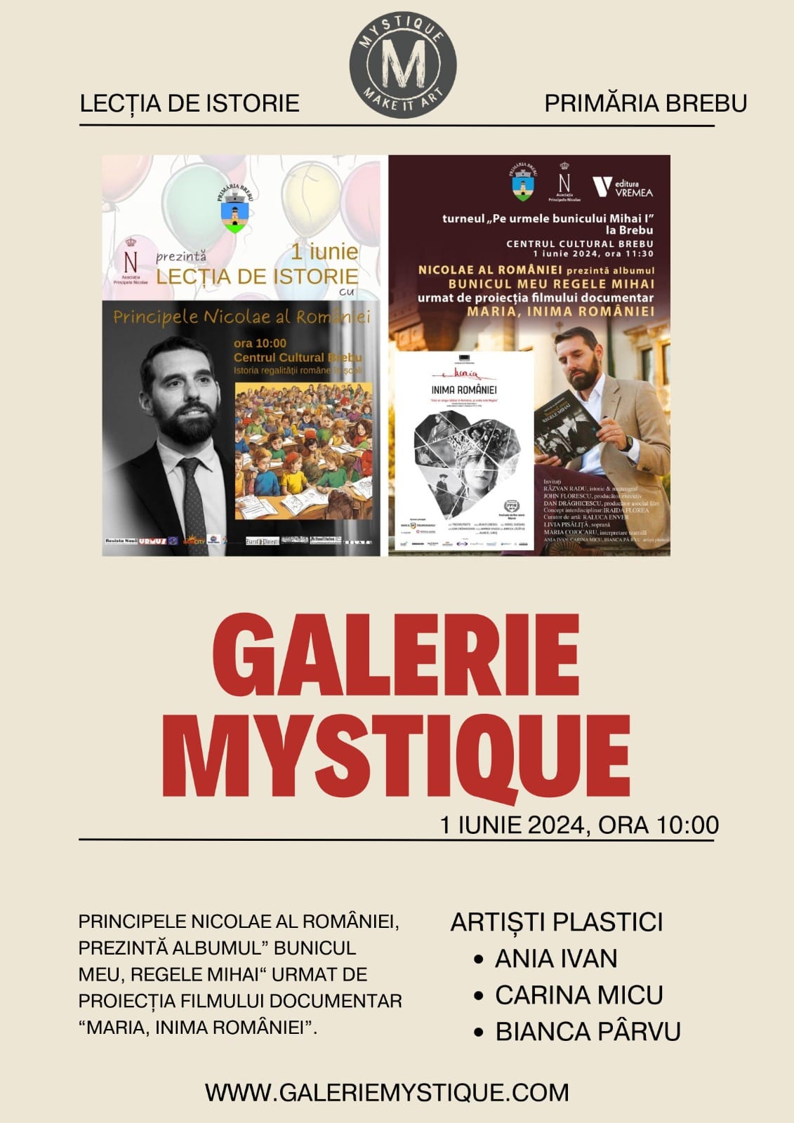 Galeria Mystique a avut plăcerea de a participa pe 1 iunie 2024, începând cu ora 11:30, la evenimentul cultural „Lecția de Istorie”, organizat în parteneriat cu Primăria Brebu și Asociația