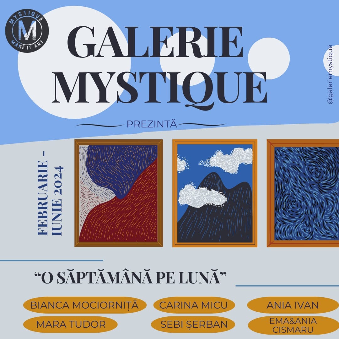 Proiectul „O săptămână pe lună”, inițiat de Galeria Mystique, are scopul de a aduce în prim-plan tineri artiști talentați. Pe parcursul proiectului desfășurat între lunile februarie-iunie, vizitatorii cafenelei au avut
