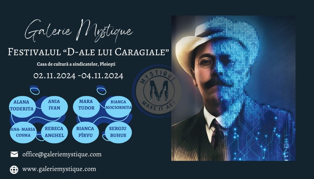 În perioada 1-3 noiembrie 2024, Galeria Mystique prezintă expoziția „Caragiale”, dedicată imaginii dramaturgului surprinsă în diverse ipostaze de tinerii artiști ploieșteni, sub îndrumarea curatorilor Raluca Enver și Rodica Georgescu. Expoziția,